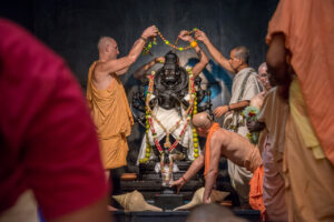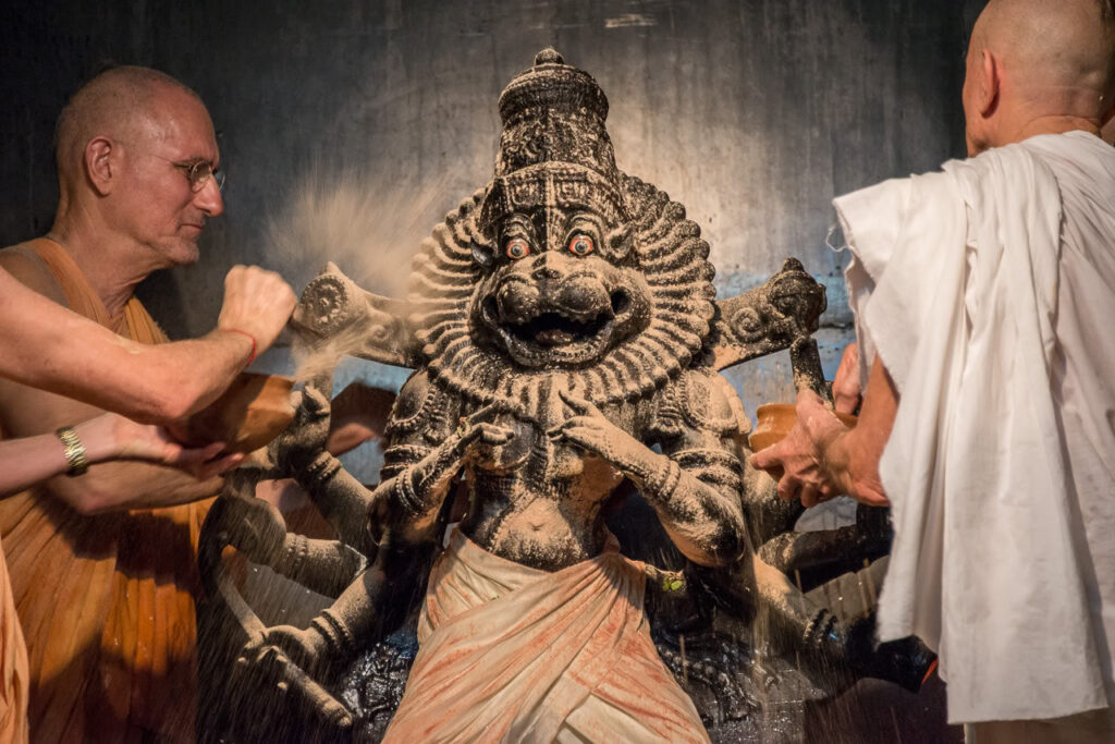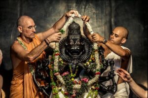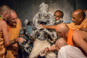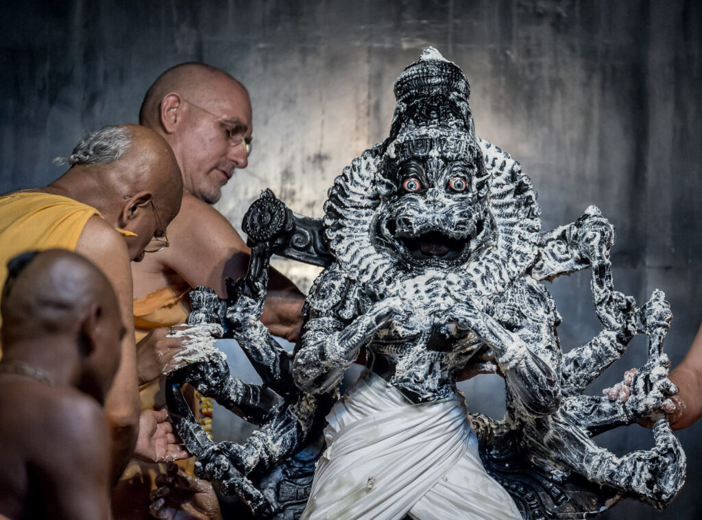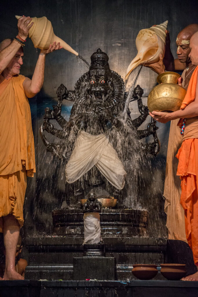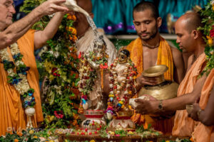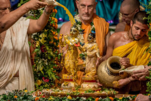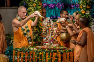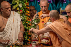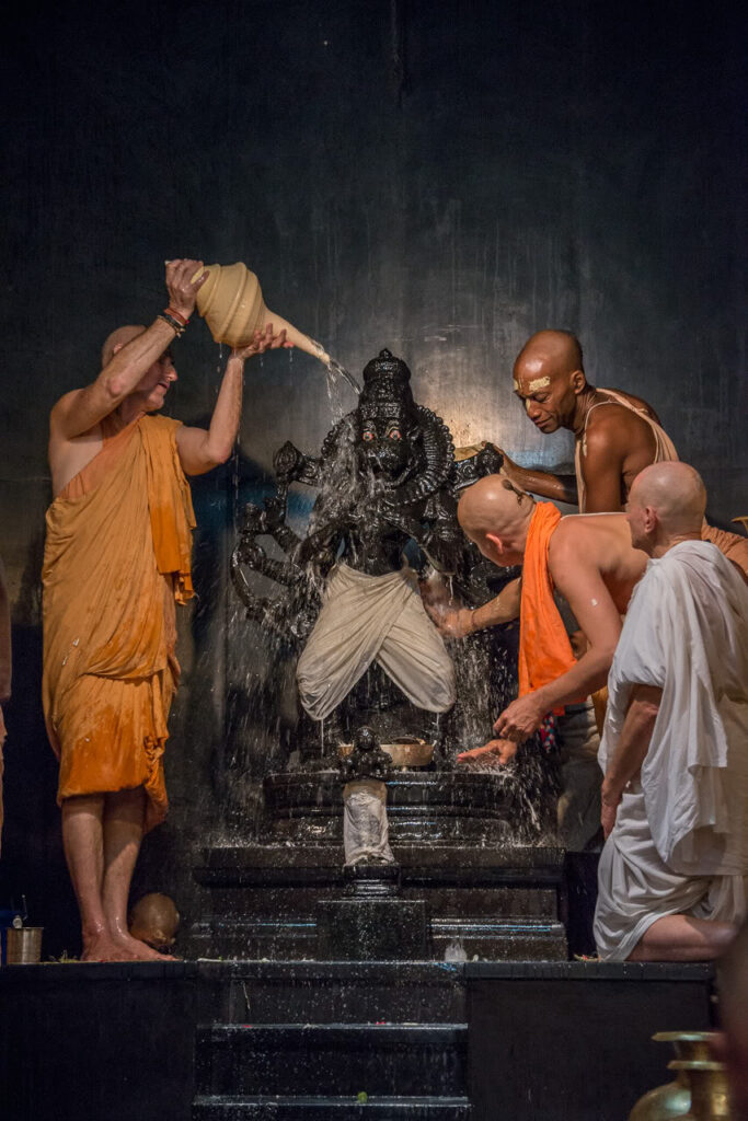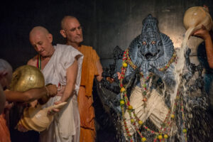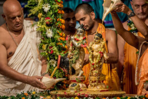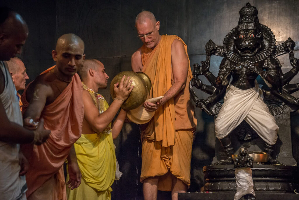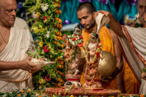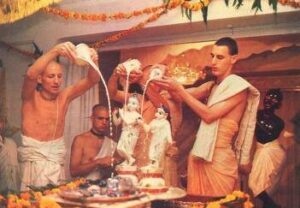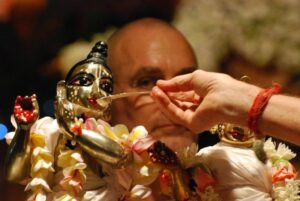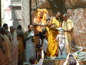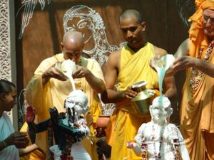 Photos of HH Bhaktividya Purna Swami Worshiping Deities